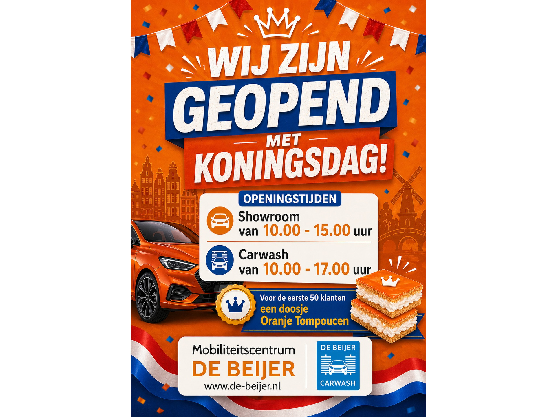 Wij zijn geopend van maandag t/m vrijdag van 8:00 tot 18:00 en zaterdag van 9:00 tot 16:00. Op afspraak is ’s avonds ook mogelijk. Zondags gesloten.